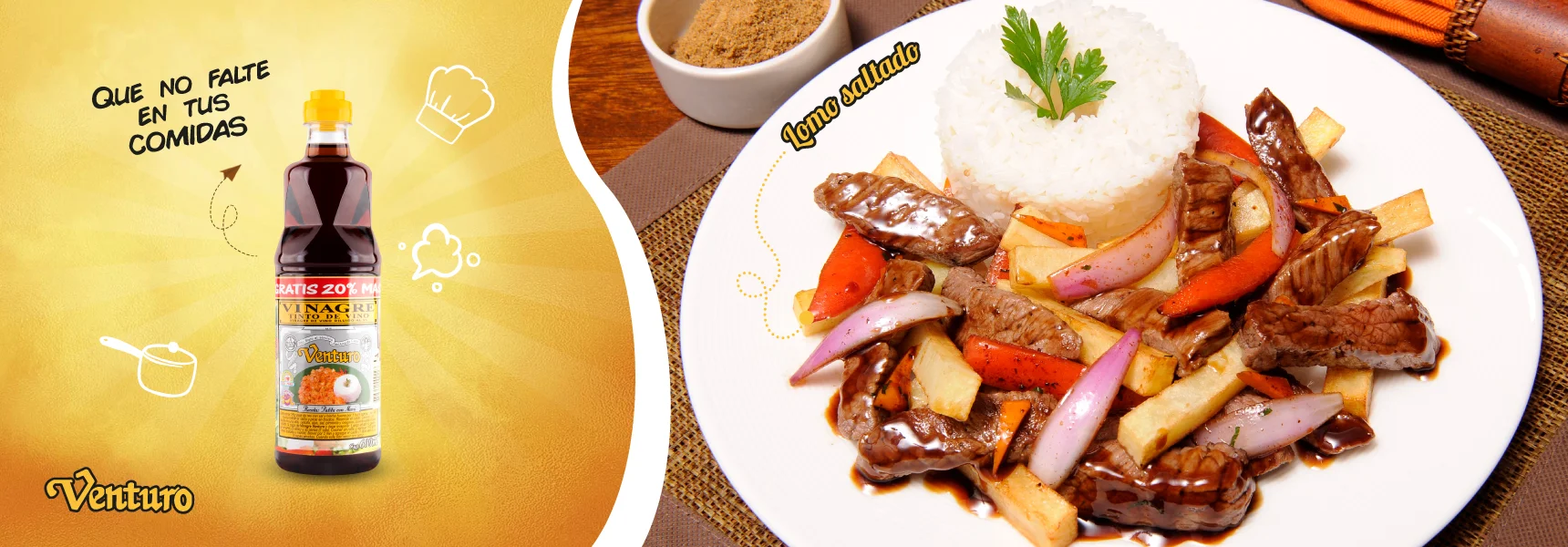 Cortar la carne en tiras y marinarlas con el Vinagre Venturo Tinto, Ajo, Comino, Pimienta y sal.